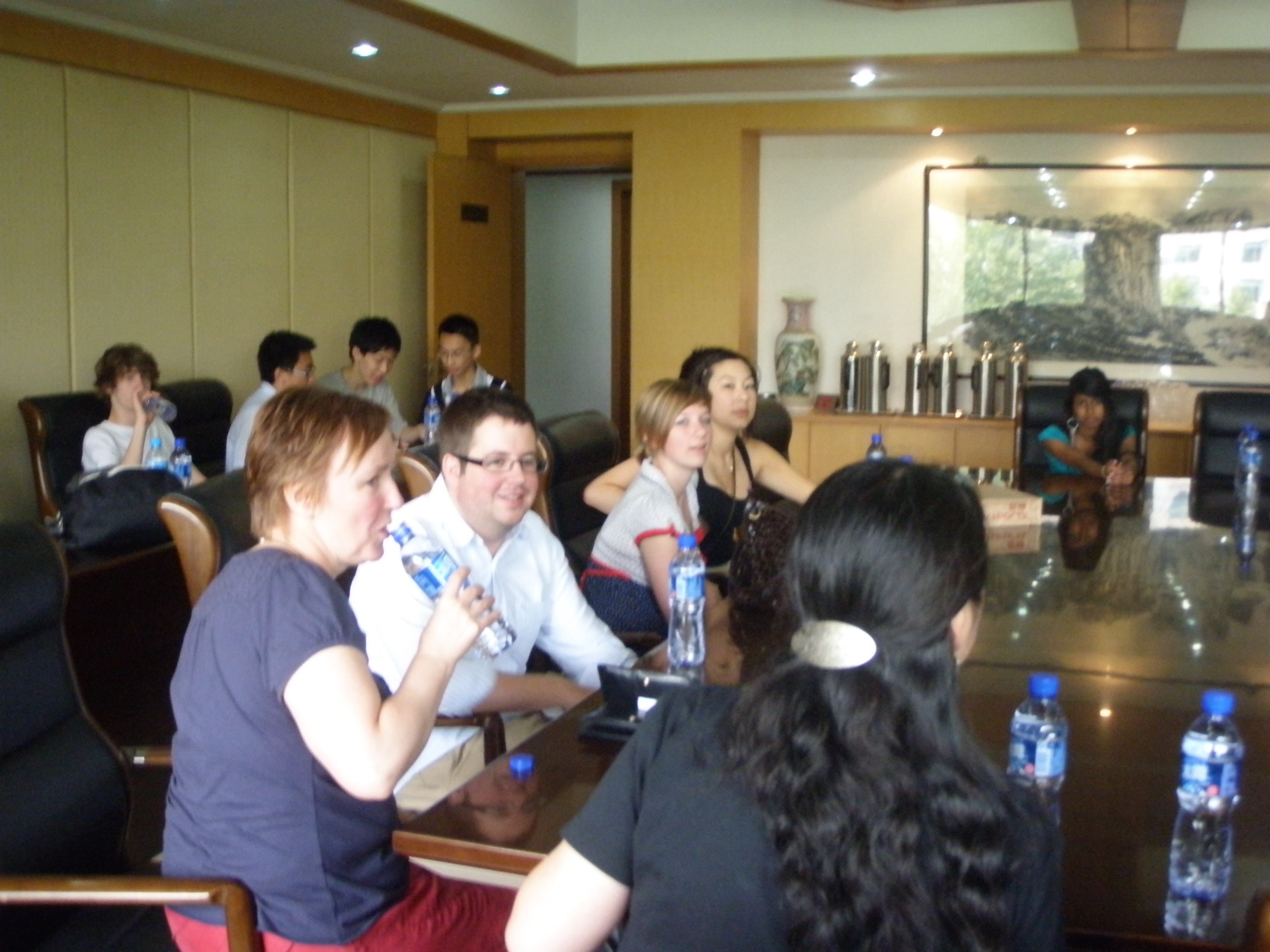 7月26日上午英欧中学的师生到达南外与南外学生见面,分配接待学生。大家在一起交流的内容包括许多方面,如自己的兴趣爱好,各自的国家,风土人情等。期间他们还花了一个小时在南外四周进行调查,之后大家坐在会议室里交流自己在这段时间的所见所闻,英国学生说出自己通过这一个小时对中国,对南外的认识。 下午南外学生把各自接待的学生接回家体验中国家庭。