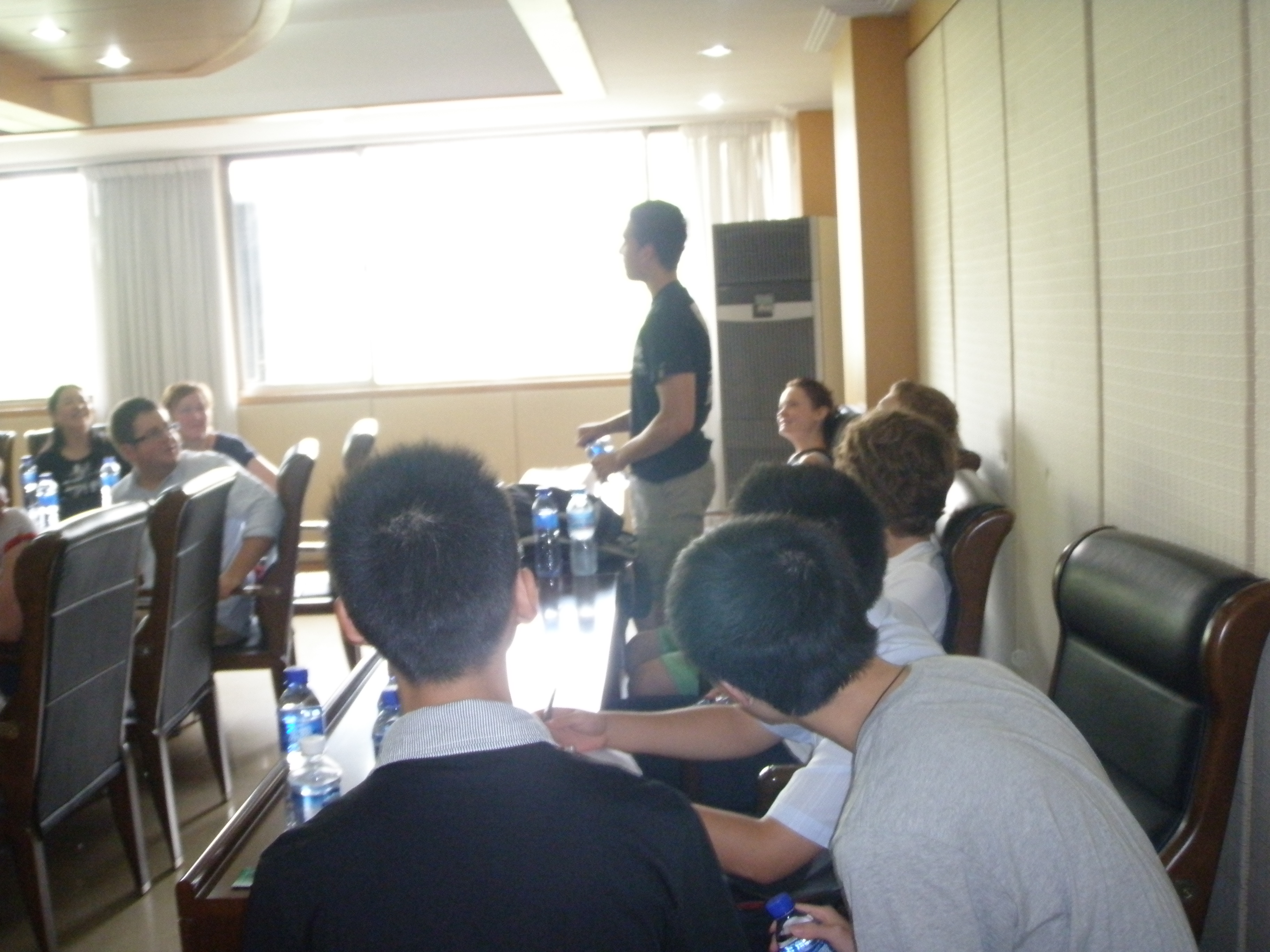 | 一个小时后大家回到会议室交流 | 同学们说出自己对中国、对南京的印像 |