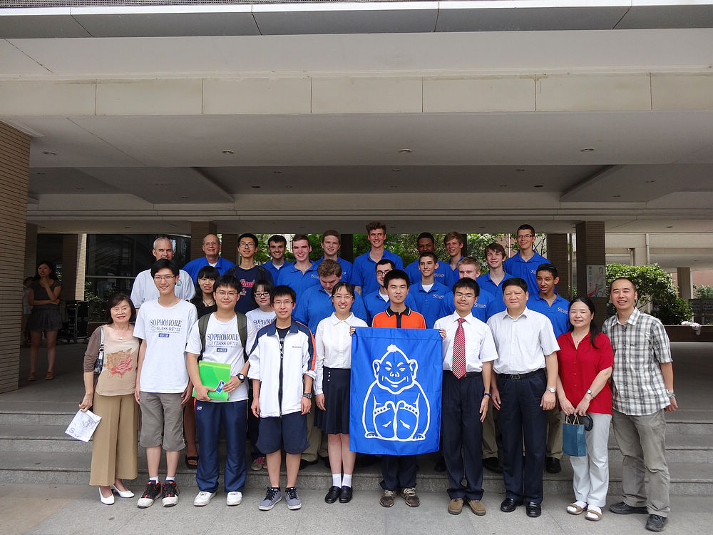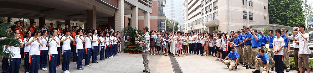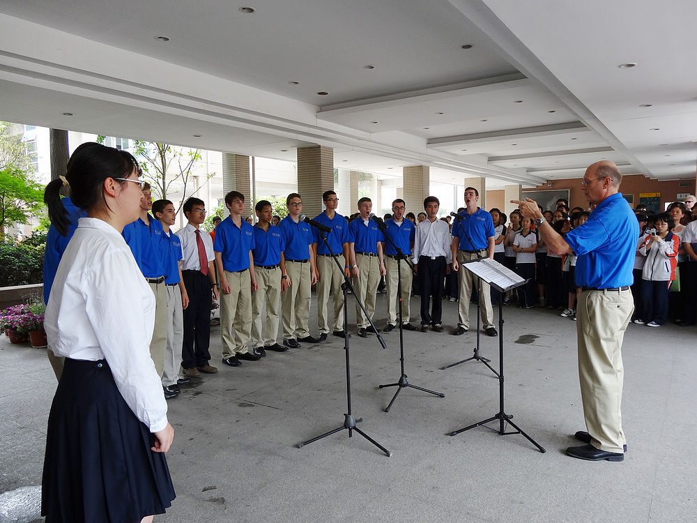 2012年6月7日美国圣路易斯市华盛顿大学附属中学合唱团与南外铜管乐团和室内乐团进行了一场“友谊之声”交流演出,让南外师生大饱耳福。