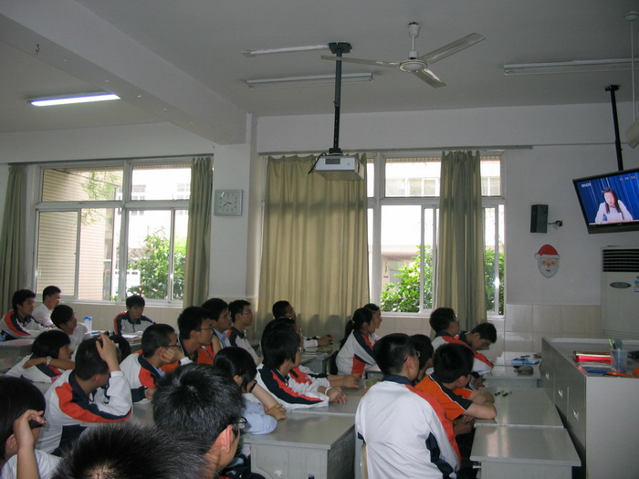 同学们在教室观看“国际天文年”专题节目展播