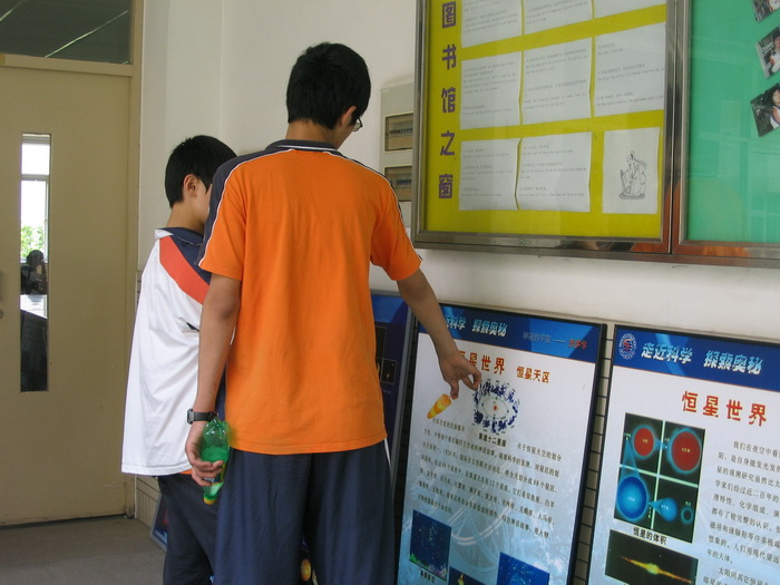 结合“09国际天文年”,校园内举办了国际天文年主题班会、国际天文年专题节目展播、“我们爱天文”签名活动以及天光所、天文台专题科普展,学校还邀请了中科院紫金山天文台陆埮院士、南京天文光学仪器研究所卢保罗研究员分别为初一、初二年级同学开设了关于《怎样认识宇宙》和《日全食》的专题讲座等。