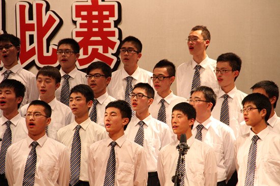 合唱比赛,叶军老师担任指挥,天气虽冷,同学们的热情却洋溢整个会场!