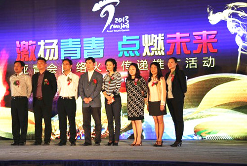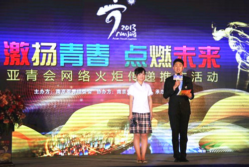 南京亚青组委新闻宣传部部长丁铭介绍了亚青建设进展,阐述了亚青火炬网络传递的意义,