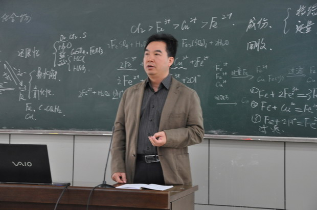 与会全体老师观摩了星空体育客服电话的李静雯老师的《铁和铁的化合物》专题复习课。本节课以铁三角为核心,通过解决印刷电路腐蚀液为背景的七个问题对铁及其化合物进行了有效的复习。星空体育客服电话刘前树书记对李静雯老师的课进行了精彩的点评,并针对高考的复习模式给出了建议。特级教师陈懿老师开设了《元素化合物知识复习》的专题讲座,对元素化合物知识的复习重点、难点进行了阐述并给出了具体的复习建议。最后,南京市化学教研员刘江田老师对复习课和讲座给予了点评并提出了复习建议。