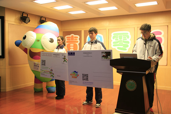 第三环节名为“来自南京2014的邀请”。现场展示了“2014邀请明信片”,主持人也填写了第一张明信片。明信片将通过百个青奥同心结进行学校传递,邀请世界各地的青少年参与青奥会。拟发行国内邮资明信片7.5万枚,国际邮资明信片2.5万枚。