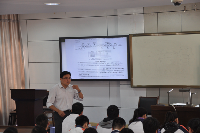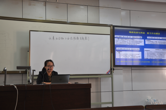 第三部分,我校高三化学备课组组长张玉娟老师做了《2015届元素化合物复习建议》的讲座。张老师着重分析了近五年江苏高考在考查元素化合物知识方面的命题特点和规律,通过结合我校备课组在复习这部分知识的实战经验,给予了有关元素化合物的性质、用途、转化与解决工业流程题的复习建议,令在场老师受益匪浅。