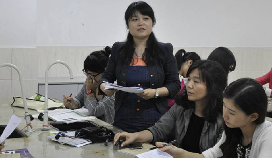 本次联合教研的主题是生物实验课的课堂教学。首先全体老师听了两节生物实验课,第一节由本部吴婷婷老师开设的初一"人和动物细胞的结构和功能"实验公开课,第二节由本部章熙东老师开设的高三实验复习课"观察植物细胞质壁分离和复原"、"观察植物细胞有丝分裂"。课后全体老师对两节公开课进行了讨论评议,肯定了两位老师实验课的创新与突破,师生互动细腻到位,趣味性与知识性有机结合,通过每位学生的动手实验,老师对实验过程的监控、检查指导及时到位,使得实验过程的监控覆盖率100%覆盖到每位学生,教学效果显著。