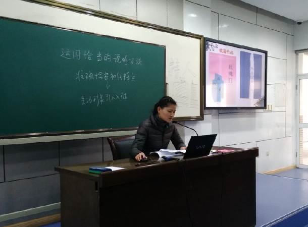 第一节课,戴雅萍老师以诗一样优美的语言伴随着精美的二十四节气图片生动地导入课文,以让学生向竺可桢先生请教有关物候的知识调动学生的积极性,从而使学生有目标的阅读课文,并迅速了解课文结构和内容。然后围绕着“作者采用了什么方法把深奥枯燥的知识说得浅显生动”这个主问题,师生进行了充分的探讨,这让学生在学习使用恰当的说明方法和生动的语言表达这两方面有了很多收获。学生们不仅对课文知识有了更明确的把握,更了解到了说明文写作时如何将事理说得浅显生动的手法。