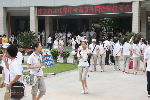 2010年6月16日至19日,来自玄武区各个学校的千余名考生在南京外国语学校考点参加了南京市2010年中考。本次南外考点共承担了41个考场工作,按照招办要求安排监考教师及相关工作人员进行严格的考前培训,考场安排设计合理,考试过程严谨,考生从进考场、考试,到交卷,监考教师从领卷、监考、到收卷、交卷,都严格按照招办规定的流程进行,并能够及时的处理学生在考试过程中的突发事件,圆满地完成了本次考点相关工作。按照考前培训的要求,监考教师对考生饮水瓶的摆放等细节考虑全面,尽理避免引患发生;此外,我校校医为发高烧的学生准备药品、温水,仔细询问病情,反复叮嘱,使其更舒适地完成考试;对手指骨折的考生,该考场按招办要求适当延时,使其能顺利地完成考试,体现了我校对所有考生的热情关怀。预祝所有考生取得理想的成绩!