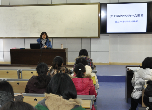 2014年12月22日(星期一),根据南京市教研室工作计划,我校费晨、韩冬妮两位高一英语老师参加全市高中英语教学研讨活动,对全市高中英语老师开设公开课。两位老师就新概念第三册第14课 A Noble Gangster开设阅读课(第一课时)和读写课(第二课时),收到良好效果。课后南京市教研室高中英语教研员邢文骏老师从文化教学、课堂设问艺术、预设与生成、及任务型框架多个角度给予精彩点评,对两位老师的课给予充分肯定。之后,我校教学处尚媛媛主任评课并开设题为“关于读写教学的思考”的讲座,向全市英语老师介绍南外高中英语教学的特色,即旨在培养学生创新性和批判性思维能力、人文情怀和素养,创设为“浸入式”、“语文课效果”的语言课堂,在座老师深感受益匪浅。