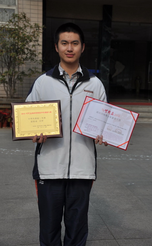 “紫荆杯” 2012两岸四地青少年书画大赛日前传出捷报,我校高三(6)班刘殷成同学,作的作品《余晖》获得中学西画组二等奖。指导教师:曹启海。