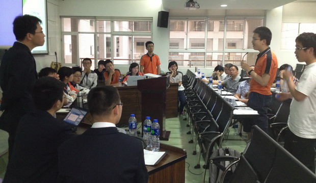 担任评委的IYPT2013国家队章灿洵同学在向比赛三方提问