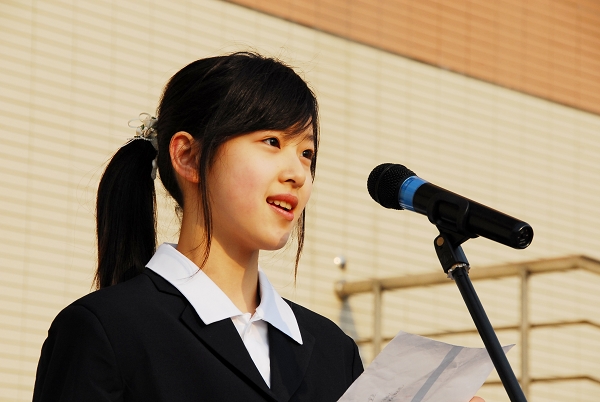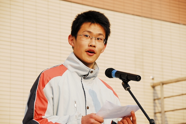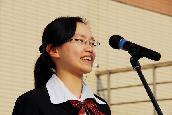 首先让我们欢迎高一(2)班的章泽天同学发言!