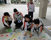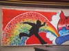 12月16、17两日,社团制作了大幅的海报,号召全校师生用智慧的双手共同开启艺术的大门,在海报一角按上多彩的手印,一排排手印变成了绚丽的彩虹。作品完成后悬挂于体育馆前,形成了开幕式主席台上的背景,十分引人注目。