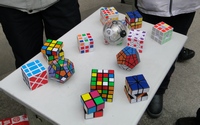 魔方社在这次沙龙活动中,展示了十多种形状各异,色彩各异的魔方,除了有常见的三阶魔方,更有些难度系数很大的金子塔魔方,粽子魔方,钻石魔方等。同学们对魔方的兴趣,非常的浓厚,无论是男生或是女生,拿起魔方,轻轻转动几下,原本打乱的魔方,瞬间就恢