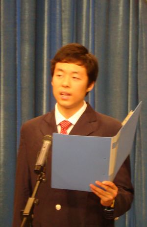 接下来发言的这位学长,估计台下不少同学都很熟悉,他有着非常广泛的兴趣,活跃在校园里很多地方:他是学生会的宣传部长,是体育场上的运动健将,更是深受学弟学妹欢迎
