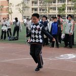 随后举行的跳绳比赛也是团体项目,每班3男3女参赛。和踢毽子比赛相比,跳绳比赛因为不受风力影响,波澜不惊,各班普遍发挥平平,最多的一位同学每分钟180个,离沙可鸣创造的每分钟199个的校运动会记录还有一定差距。最终,1班获得冠军,7班第二,3班和6班并列第三。