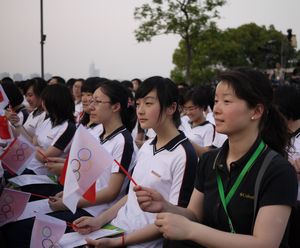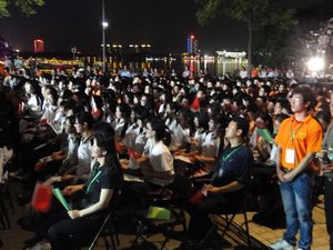 届青年奥林匹克运动会会徽发布仪式”,开幕式的时间是晚上七点半,同学们早早的入场等待这一历史性的时刻。