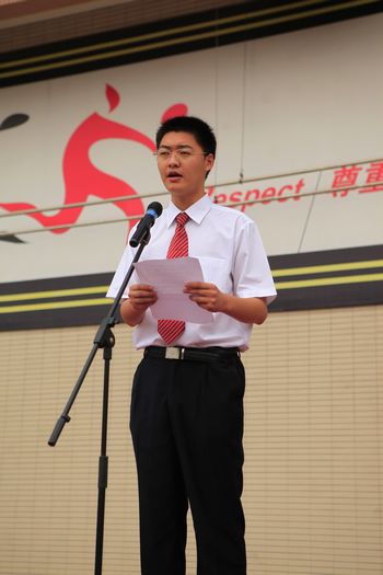 说到南外人,不得不说南外人的标志——出色的外语能力。我们不但有各项英语测试和口语大赛中有优异表现的南外人,更有许多精通小语种,外语优势,文理兼长的同学。下面有请2011届德班毕业生被保送至北京外国语大学的吴宋际文同学发言。