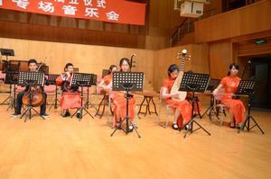 我校国乐飘香社的同学在活动开端作了暖场演出,她们演奏了《在银色月光下》、《彩云追月》、《喜洋洋》等名曲,表现出色,充分展现了我校学生的音乐才能和中国灵魂。