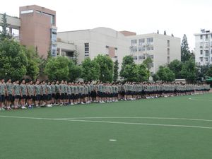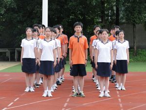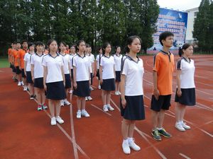阅兵仪式开始了,我们喊着响亮的口号,排着整齐的方队,昂首挺胸地经过主席台,接受着老师同学和领导们的检阅。主席台前,我们英姿飒爽,齐步变换正步从容不迫,就像我们班的口号那样“其疾如风,其徐如林,侵掠如火,不动如山”。这此起彼伏的口号,震撼着初一的全体学生,同时激励着我们上好高中的第一课。