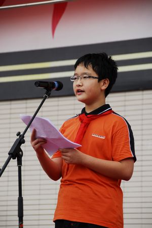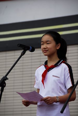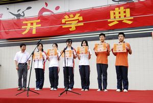 张:前几天的学前教育,让我们初步领略了南外浓郁的学习气氛,严明的规章制度。作为南外学生,应该有远大的志向,吃苦耐劳的精神和忘我奉献的伟大人格。我们全体初一新生一定会以《中学生守则》、《南京外国语学校学生日常行为规