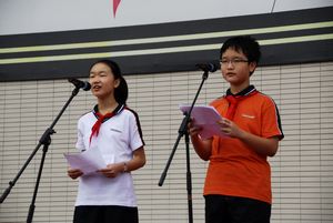 薛:过去六年,我们是勤奋的,努力的,因此我们幸福地相聚在向往已久的南外校园。对于我们来说,中学的学习生活是新鲜的,令人向往,我们带着好奇心,求知欲开始我们的初中生活。在南外这个大家庭里,我们将开启知识的大门,踏上探求真知的高速公路。