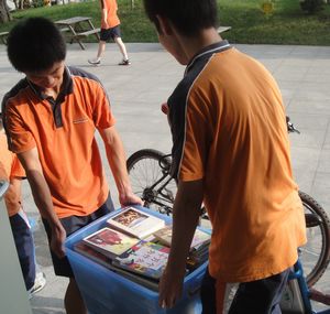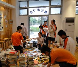 为了俱乐部的成立,南外青年志愿者做出了很大的努力,首先发动全校同学捐出自己心爱的图书,共筹集到上千本