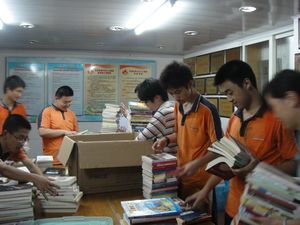 图书。随后志愿者们对所有的图书进行了筛选整理,在每本书的扉页上都盖上了南外漂流图书的印章。经过精心地挑选,志愿者们选择了一千本适合孩子们阅读的读书,并把一箱箱的图书搬运到位于兰园社区内的梅香园读书俱乐部,再将一本本图书整理上柜。他们对于新市民子女的这份爱心是值得我们赞许的。