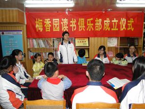 仪式开始前,南京外国语学校的青年志愿者们就已抵达活动现场。他们与到这里读书学习的新市民子女们交谈、分享读书心得,气氛融洽。仪式由梅园街道团工委朱书记主持。首先由玄武团区委张书记和尹老师共同为梅香园读书俱乐部揭幕。接着,梅香园读书俱乐部的发起人、南外国乐飘香