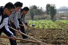 下一起放声高歌的感动与快意。在经历了第一次种青菜、第一次给果树施肥、第一次种小麦后,许多同学也从这许多的第一次中真正体会了“一粥一饭当思来之不易,半丝半缕恒念物力维艰”的深意。