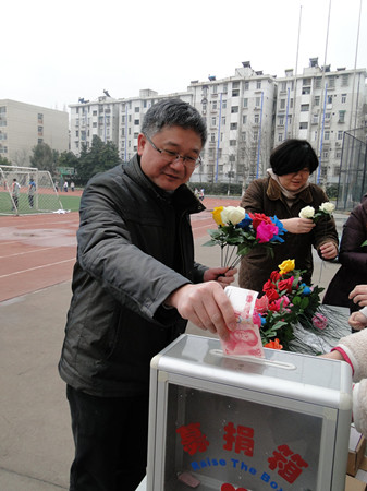 此之前,学校初二年级的600位同学亲手制作了精美的纸质鲜花,这600朵凝聚爱心的花朵,将在义演