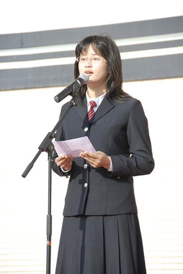 金诚至:老师们,同学们,大家早上好,我是来自高三(8)班的金诚至,很荣幸今天能够站在这里和