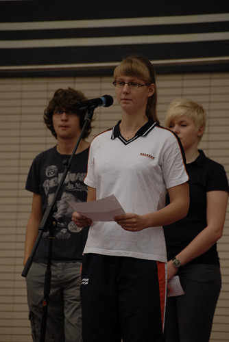 jamin和我——Julia组成的第二小组。我们的主要议题是德国的饮用水。我们将这一主题分为三个副题。我负责的副题使瓶装水和自来水的对比。说到饮用水,自来水对人们很重要,因为人们都直接饮用自来水,它们的饮用标准是符合法律规范的。所以每人都可以自行在瓶装水和自来水中做出选择。大多数德国人更倾向于瓶装水。