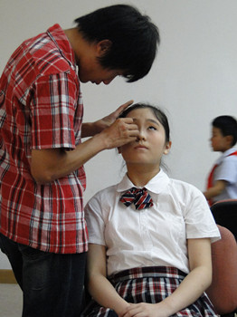短。 一上午的彩排就此结束。吃过午饭后,我们来到了休息室化妆,并且多次练习,找准自己的定位,