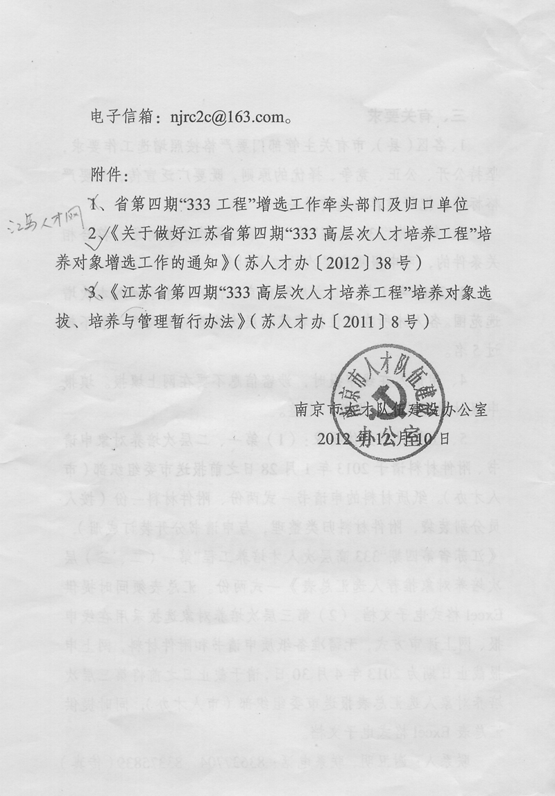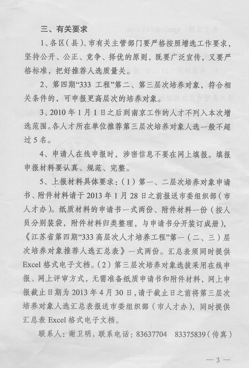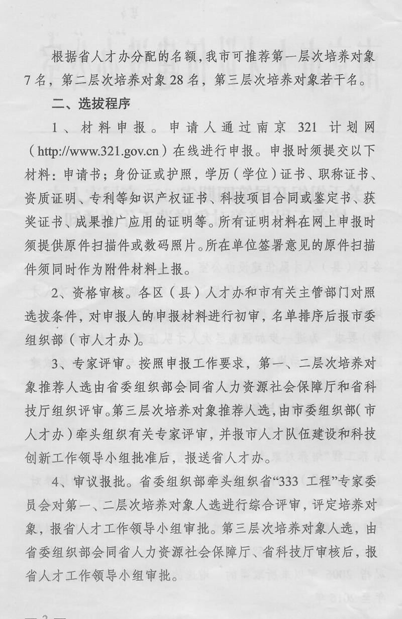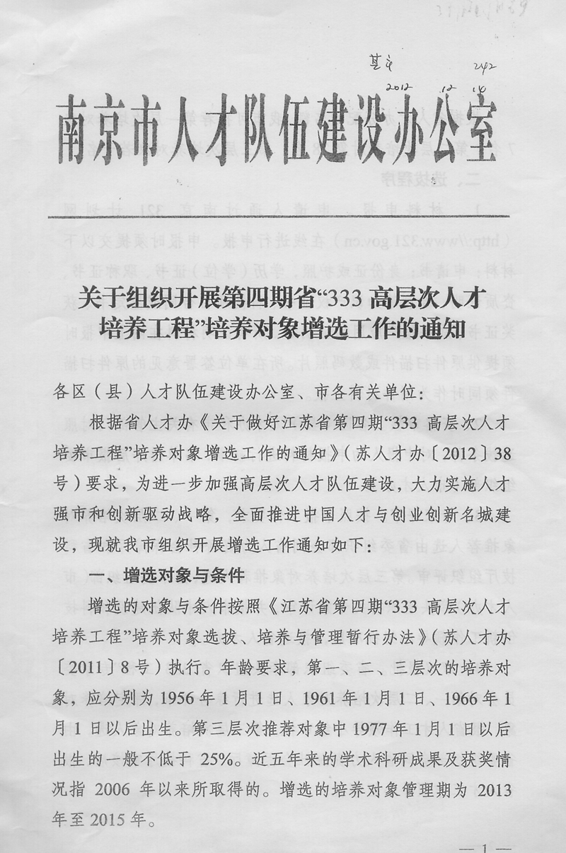 关于做好江苏省第四期“333高层次人才培养工程”培养对象增选工作的通知.doc