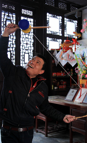 传授画玉米的技巧,抖翁的大叔变换着花样为我们摆拍。一间屋子里,我们发现了一只绿色的小玻璃箱,上书“学魔术找魔王”几个大字。见屋内没人,向守门的保安叔叔一打听才知道,这魔王老爷爷是一脾气极好的长须老翁,坚持免费教授原创魔术。去年开始因为身体大不如前,便不再能出门。一路走走看看,我们发现真正愿意为那些传统民俗技艺停留的人少之又少。在水泥构筑的森林中,每个人都疾步匆匆,也使得这些技艺逐渐走向面临失传的尴尬境地。想起不久前新闻联播中关于老腔艺术的介绍:老腔原是一种民间吹拉弹唱配合皮影戏的组合艺术,上世纪九十年代随着电视的普及,老腔逐渐受到冷落。但老腔艺人们并不灰心,及时对表演形式作出调整,现在这一传统艺术正逐渐恢复了生命力。如果南京的传统民俗艺人们能够在传统技艺的的基础上结合一些时尚元素,增加其实用性,我相信不久的将来一定会有更多人懂得这些“老”东西的美丽。