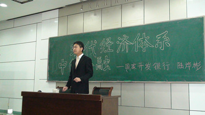 2012年2月29日下午,我有幸参加由我校金融社举办,由国家开发银行专家陆烨彬博士主讲的讲座《现代经济体系中的金融》。陆烨彬博士年纪不大,文质彬彬。和大家客气地打着招呼,他谦虚地表示这谈不上讲座,只是一次面对面的交流,刚开场就给所有同学留下了深刻的印象。