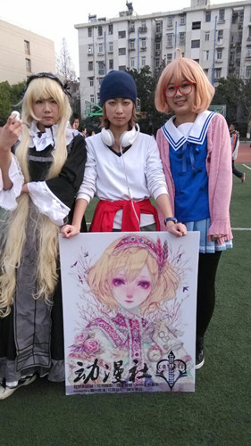 义卖当天摊子前的人流量非常的大,同学们捐的漫画轻小说周边等很快就被热情的其它同学们买走。剩下的东西不是那么好卖,但是看摊子的同学们仍然是一直坚守岗位直到学校清场才离开。出cos的同学也为社团的摊子招揽了不少的生意。。最后义卖的结果很不错,东西清售一空。