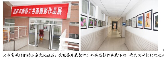 校园文化作为德育的重要环节需要从方方面面进行找到切入点,充满人文气息的校园环境最能培养学生的人文修养,本学期我校在校园中的各个角落开展布置,同学们发挥自身的特长举办了书法展、绘画展、摄影展等活动
