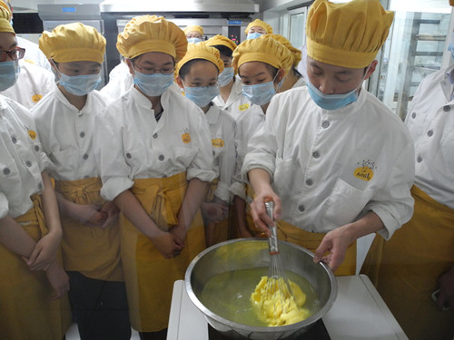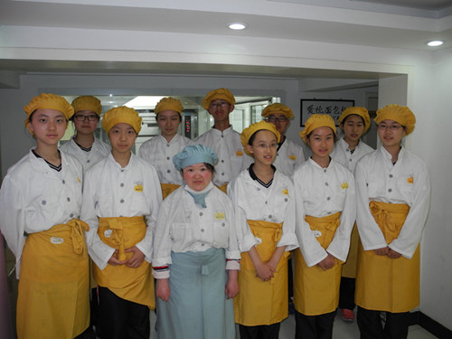 这次活动是由南京外国语学校与爱德基金会联手、宜信财富赞助的一次公益活动——与家长一起作泡芙。活动一开始,我们首先观看了爱德面包坊的宣传片。爱德面包坊看似普通,实际上,这是一家为残疾人提供平等就业机会的面包坊,这里近三分之一的员工是智障人员。但在这里,他们不会受到嘲笑,不会被歧视。他们通过自己的努力,做出漂亮的面包,获得他人的尊重。这时,负责活动的义工姐姐领着一名这样的员工走了进来。她叫慧慧,今年31岁,个子不高,却很可爱,脸上带着羞涩的笑容。在做完简单的自我介绍后,她腼腆地笑了笑,便不好意思再说下去。而我们都被她可爱淳朴的个性所打动,报以热烈的掌声。