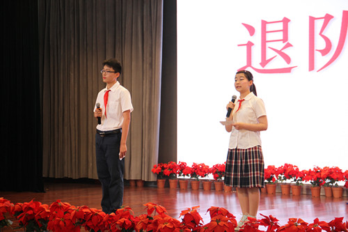 在充满激情的《那一年的六一》朗诵后,同学们最后一次佩戴着陪伴他们八年的红领巾,面对鲜红的少先队队旗庄严呼号。在队歌声中,同学们摘下红领巾,细心地叠好,永久珍藏。