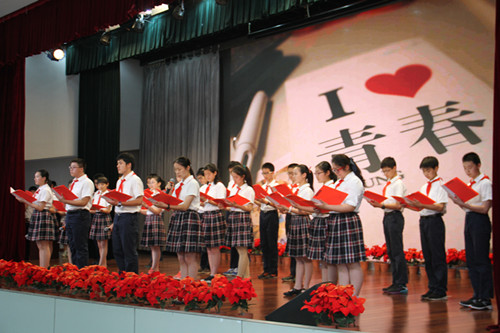 6月1日下午,我校全体初二学生在报告厅隆重集会,举行以《奔跑吧,青春!》为主题的退队暨入团宣誓仪式,老师、家长和学长们送上了殷切的期望和真心的祝福。