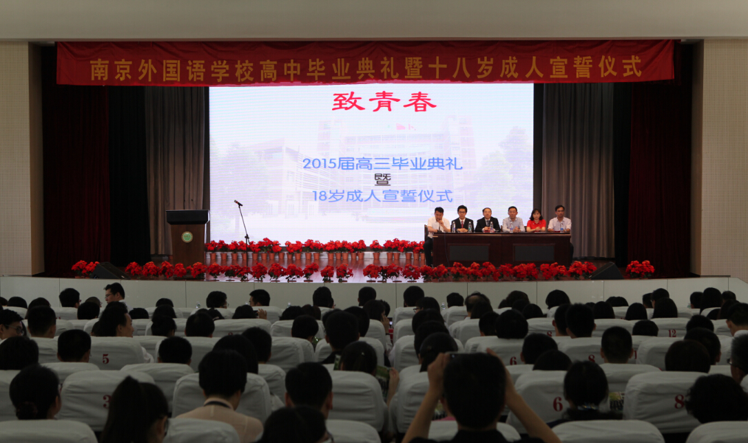 6月11日下午,南京外国语学校2015高三毕业典礼暨十八岁成人宣誓仪式在校大礼堂隆重举行,校领导、高三全体老师、同学及家长参加了毕业典礼,共同见证孩子们成长、毕业的难忘时刻。