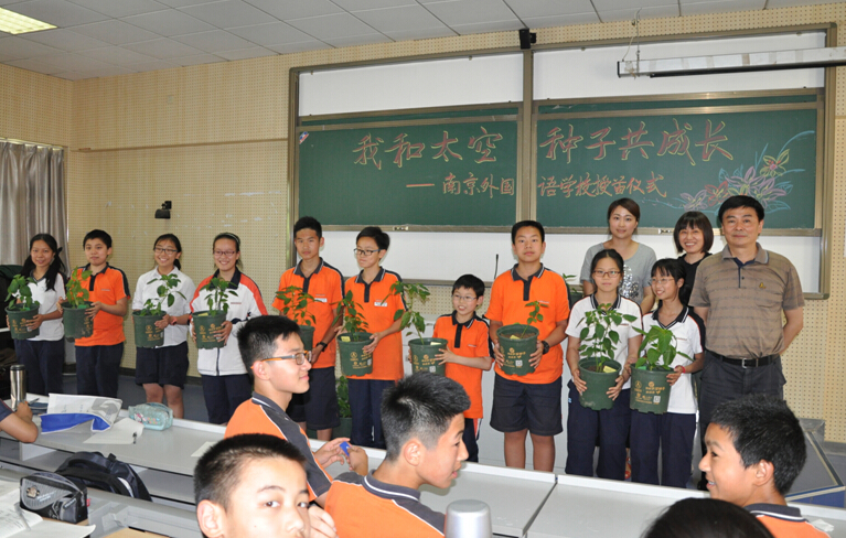 2015年6月11日,在南京外国语学校校园内举行了“对话航天英雄,我和太空种子共成长”太空种苗种植活动的授苗仪式。