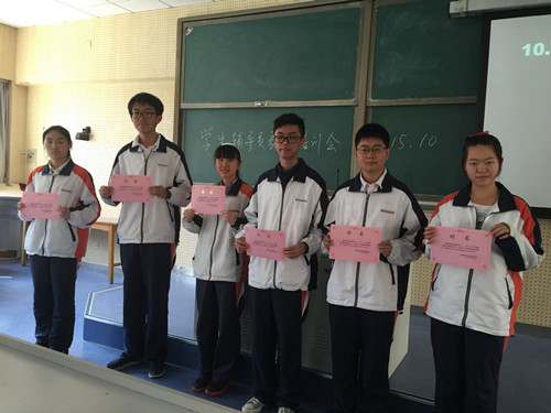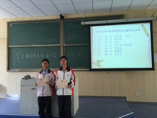 10月10日中午,在E3阶梯教室召开了2015-2016学年学生辅导员表彰及培训大会。参与此次会议的有学生处尹荷蓉老师和高一、高二的学生辅导员们。