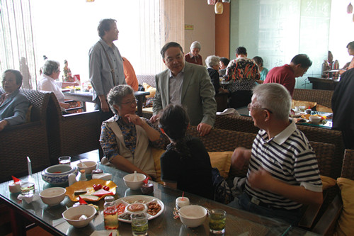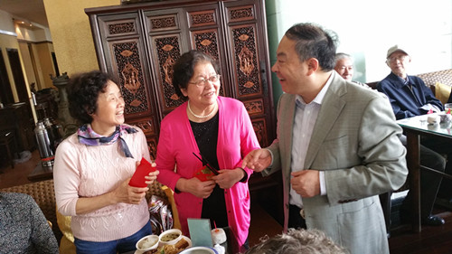 以邹正校长、刘前树书记、王瑞卿副校长、朱征副校长为代表的校领导前往活动现场,给离退休教师致以节日的问候,并且对60岁至90岁的寿星教师和钻石婚、金婚的教师送上生日的祝福,并颁发了“老有所为”奖。