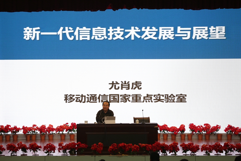11月18日,东南大学信息科学与工程学院院长、长江学者计划特聘教授,国家级有突出贡献的中青年专家、全国五一劳动奖章获得者、国家第四代通信技术首席科学家尤肖虎教授应邀来我校作讲座。全校教职工和选修“走近大师”选修课的高一年级学生一起聆听了讲座。我校党委书记刘前树老师主持讲座。