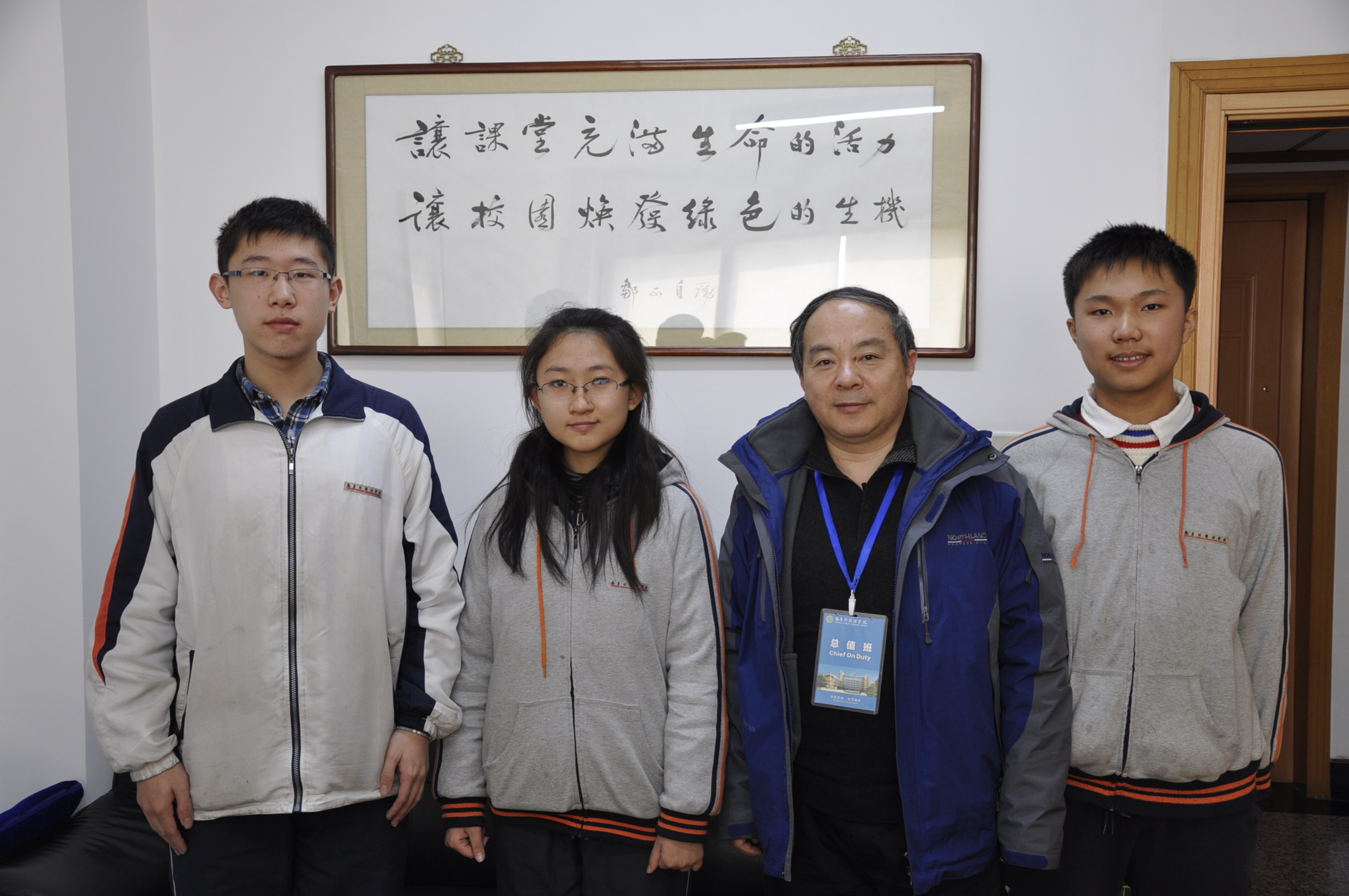 在2015年全国高中数学联赛中,我校参赛同学发挥出色,有34人获省一等奖,6人获国家一等奖。其中高二年级丁力煌、朱煜晨同学以高分入选省队,高轶寒同学以全国女子比赛第三名的好成绩直接参加全国冬令营,加上高三年级徐锦灏同学入选国家集训队,我校共有4人稳居江苏省榜首。