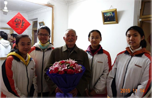 一进门满眼明亮。客厅虽小,一面恰到好处的大镜子使得我们五六人也不觉拥挤。唯一的亮色,一金一红:正红的“福”字,金色的相框——照片上的人大家都认识,老人和习近平总书记。我们送上花和果篮,老人立刻客客气气地道了谢,动手搬出几张板凳,要我们坐下,还想忙着倒茶,被我们劝住了。